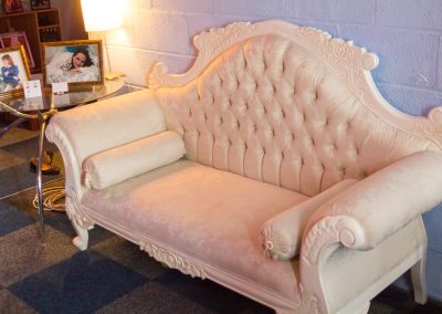 - Classic chaise in white. This beautiful piece lends itself perfectly to boudoir and photography. - With curves in all the right places it has been an in-demand prop from the moment it was purchased.
